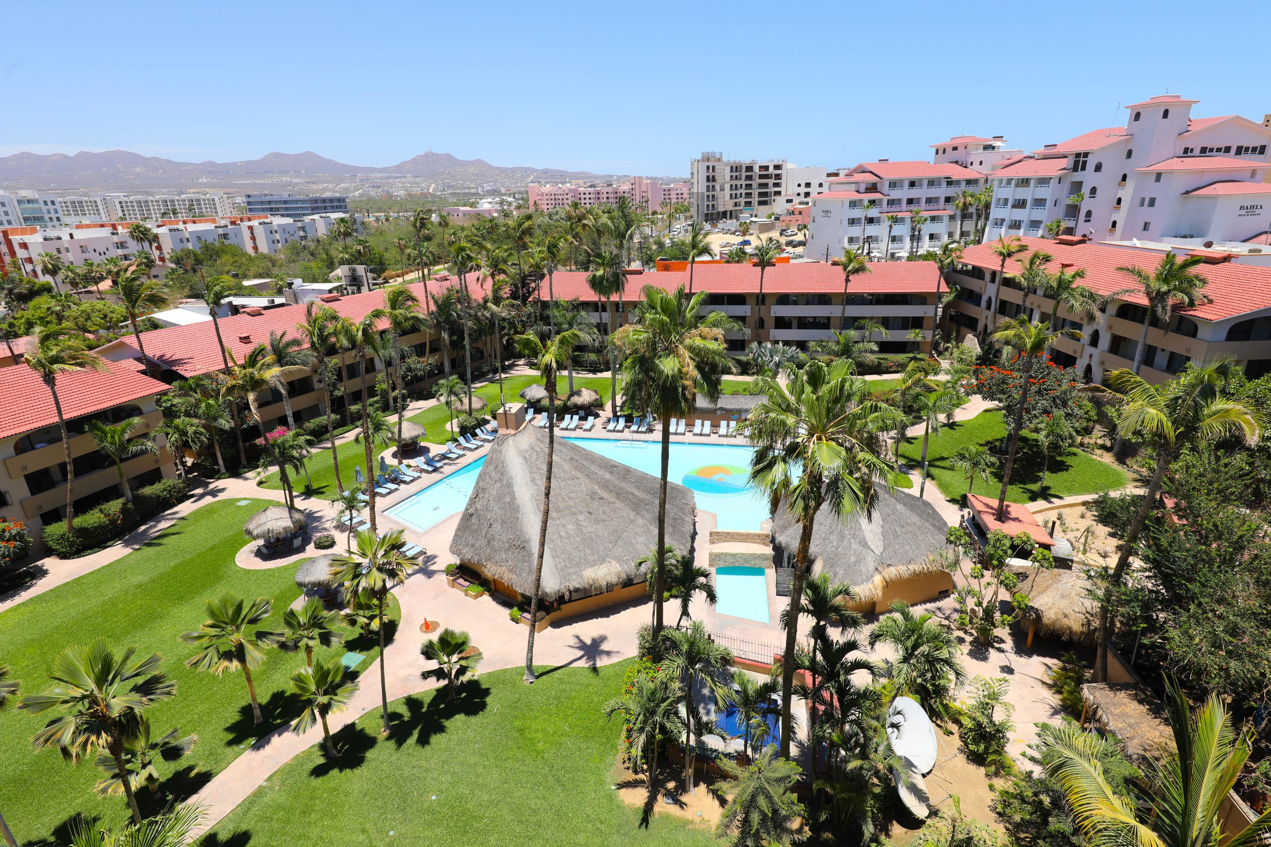 Marina Sol has five buildings, in the middle is a lush Oasis of grass, tropical flowers and palm trees, featuring one of the largest heated pools in Cabo San Lucas, where you can relax and enjoy the sun, if you are in need of refreshments, you will be happy with the swim-up bar or enjoy a relaxing time in the large Jacuzzi. Also in the courtyard is a games room with a Pool Table, Table Tennis and two TV, s.