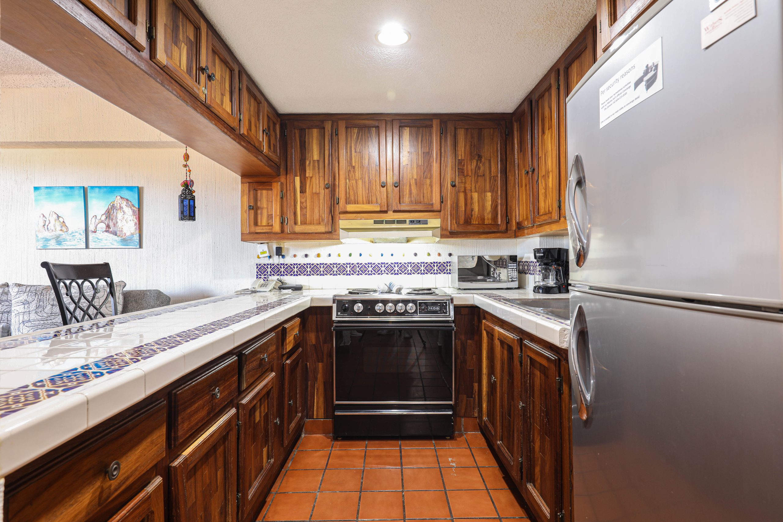 A two-minute walk and you are on the beautiful Medano beach, one of the best swimming beaches in Cabo featuring wonderful restaurants and all kinds of water sports. Take a water taxi with the family to see the famous “Cabo Arch” and “Lovers Beach”. Another five-minute walk and you will find the center of town and the Marina, Cabo San Lucas has some of the best sports fishing in the world. Conveniently located are two Supermarkets and a large shopping mall, all about a two-minute walk from Marina Sol.