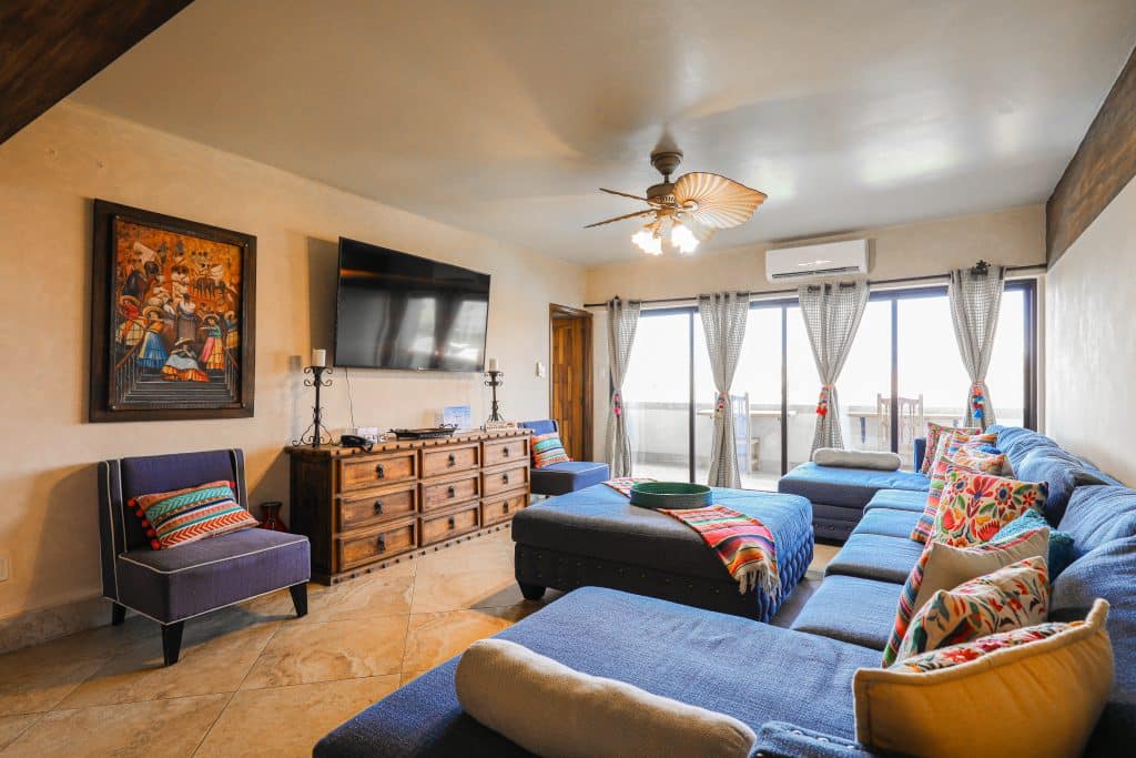 This luxury 2100 sq ft 3-bedroom recently remodeled condo is the perfect place to stay for your vacation in Cabo, it is located in the heart of Cabo San Lucas, one block from the famous Medano beach, and only a five-minute walk to the center of Cabo and the Marina. This beautiful condo which can easily sleep six guests with a King bed in the master bedroom, a Queen and a Twin bed in the second bedroom and two Twin Bunk beds in the third bedroom, there are two beautifully appointed bathrooms with all the amenities plus hair dryers. The Kitchen has everything to satisfy all your cooking needs, including a dishwasher! UV water filters supply water throughout the condo including the refrigerator for cold drinking water and making ice. Eat at the large granite island that seats 6 or BBQ your catch of the day on the spacious Patio where you can enjoy the beautiful view of the courtyard and pool, while waiting for your laundry to finish in the built in Washer & Dryer. Quiet air conditioning in each room keeps you cool during the warm summer nights. For your viewing entertainment a 55” Flat Screen Smart TV is provided in the living room. 40” Flat Screen Smart TVs are in both bedrooms. This condo has its own dedicated Fiber Optic Internet service (300 Mbps) plus phone service with free Local & International calling.